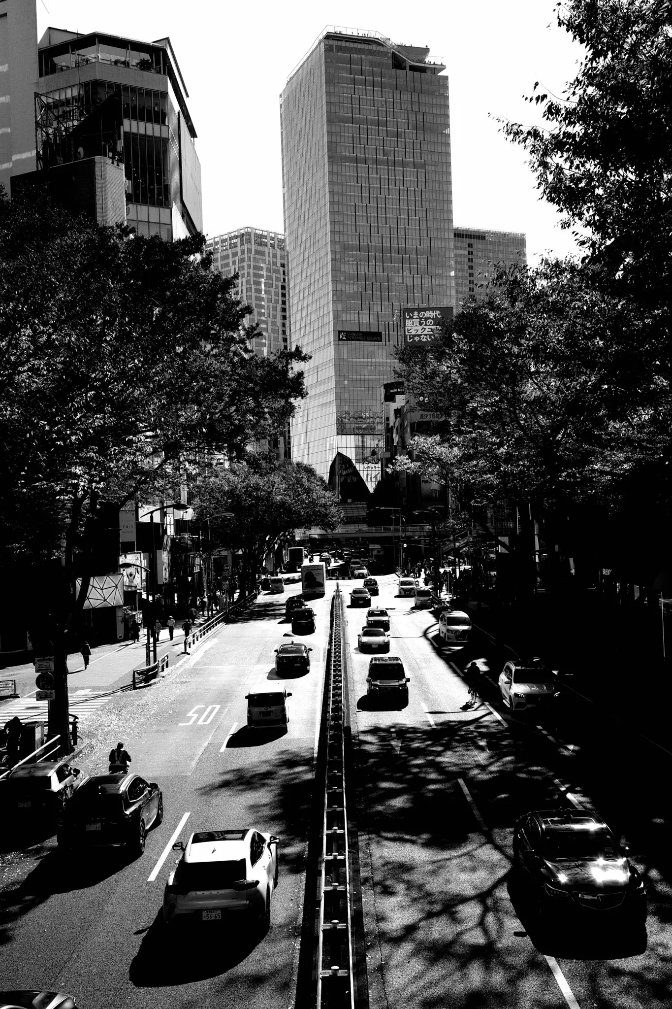 有名な?歩道橋の上から、渋谷スクランブルスクエアを望める場所。