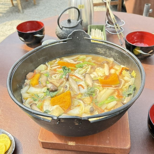 談合坂SAの「豚汁ほうとう」をよく食べていたので、味噌汁の中に麺が入っているイメージだったのですが、全然違いました。
