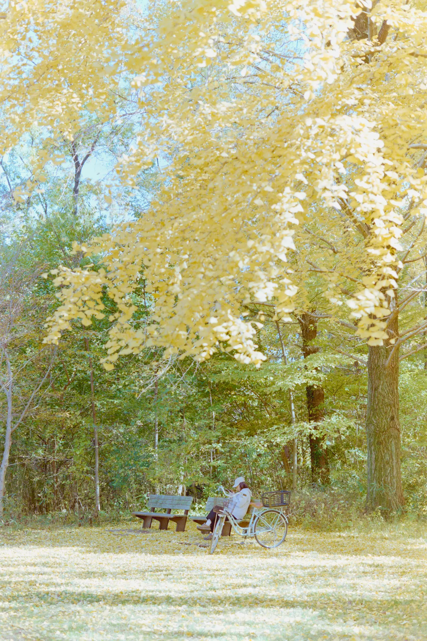 園内をブラブラしていると、遠くに大きなイチョウの木があるのに気づきました。