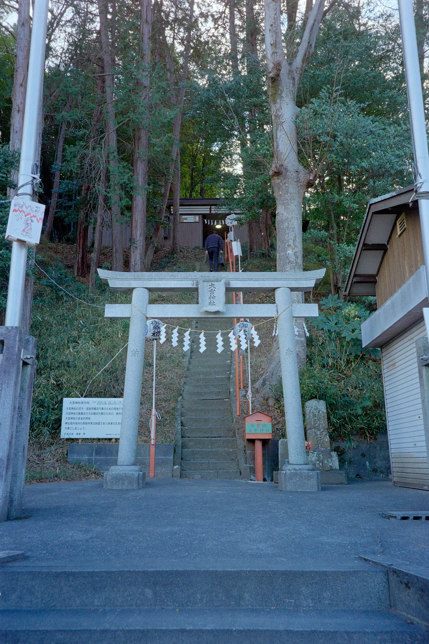 七福神巡りとは関係ないのですが、移動中に急な階段と、その先に神社があるのを発見しました。